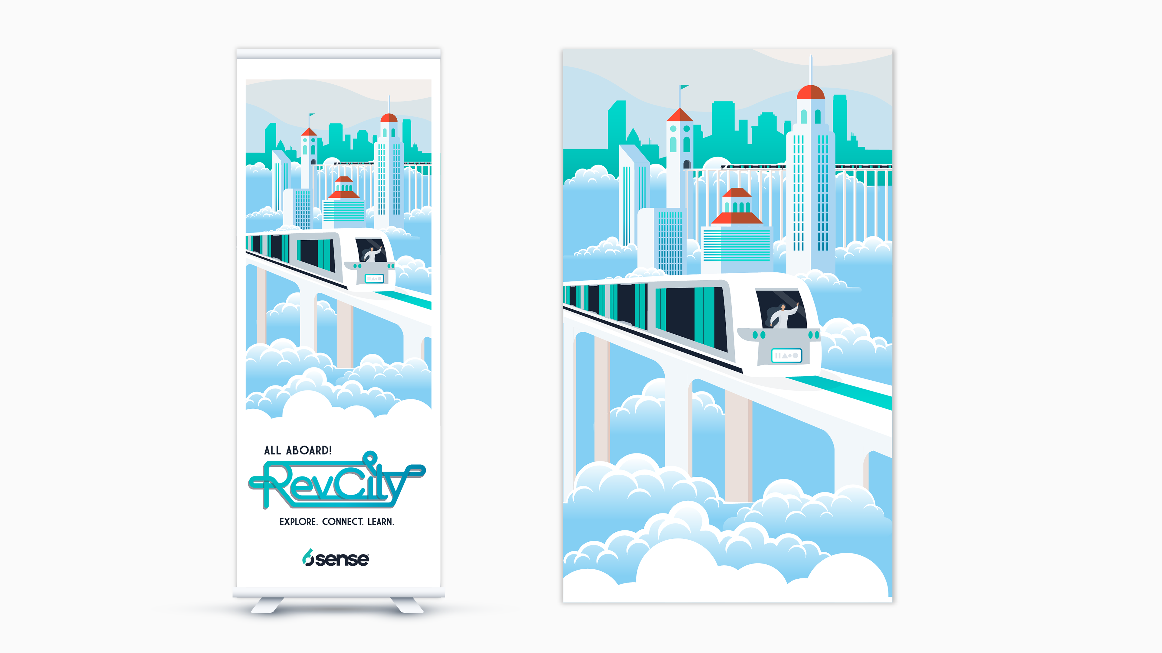 As a Design Collaborator on Breakthrough 2022, I worked closely with the Art Director and 3D Animator to create an interactive AR experience that introduced Revcity—a community space for B2B marketing and sales professionals to share best practices and connect. I contributed to the design of the Revcity booth, which featured an AR-enabled banner and coaster showcasing illustrated city scenes. QR codes on these materials launched an animation that brought the artwork to life, enhancing the attendee experience with an engaging digital layer.