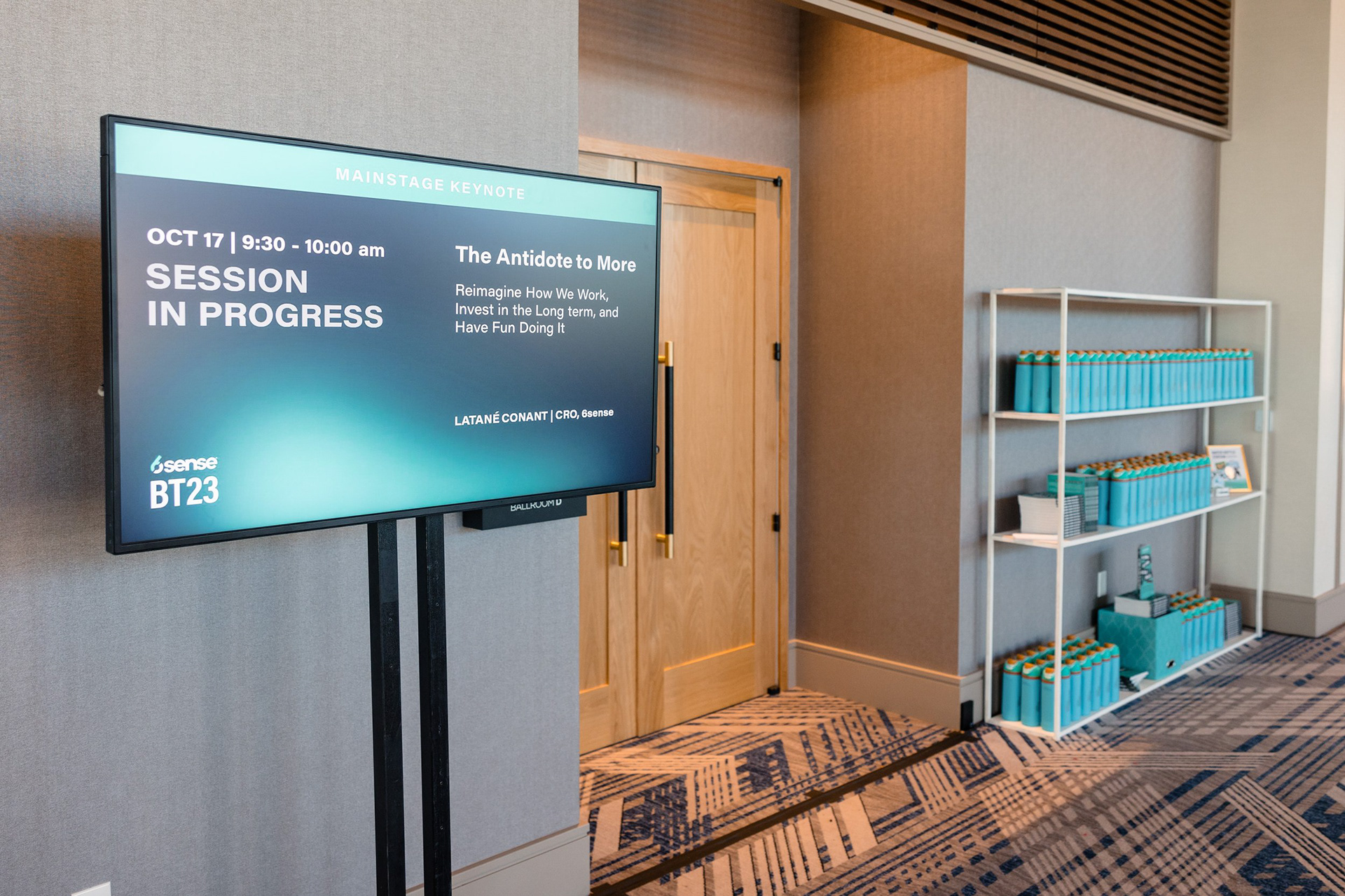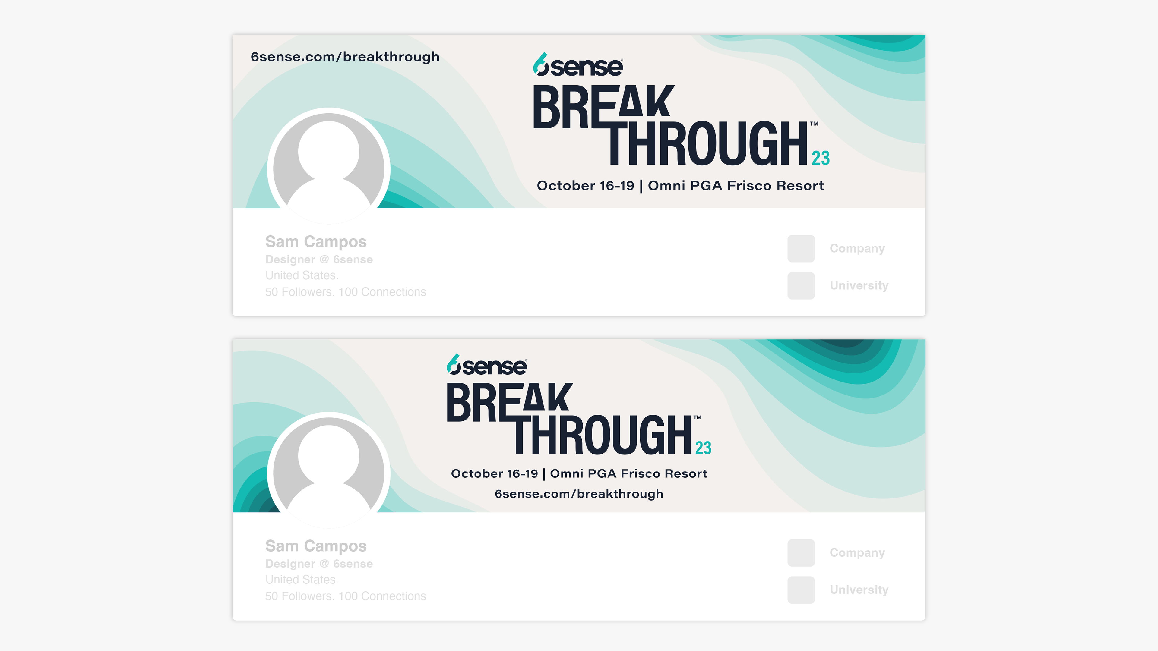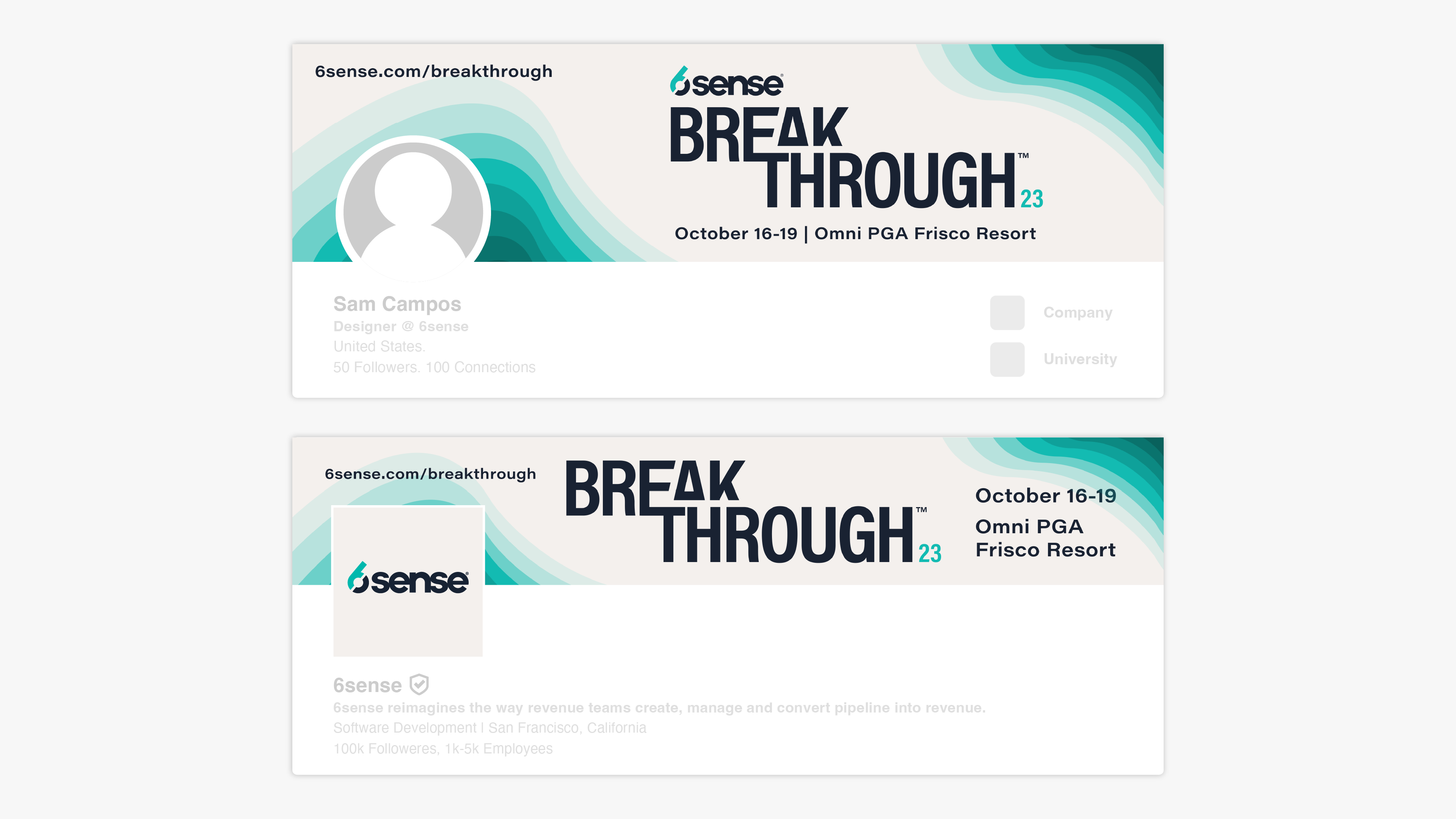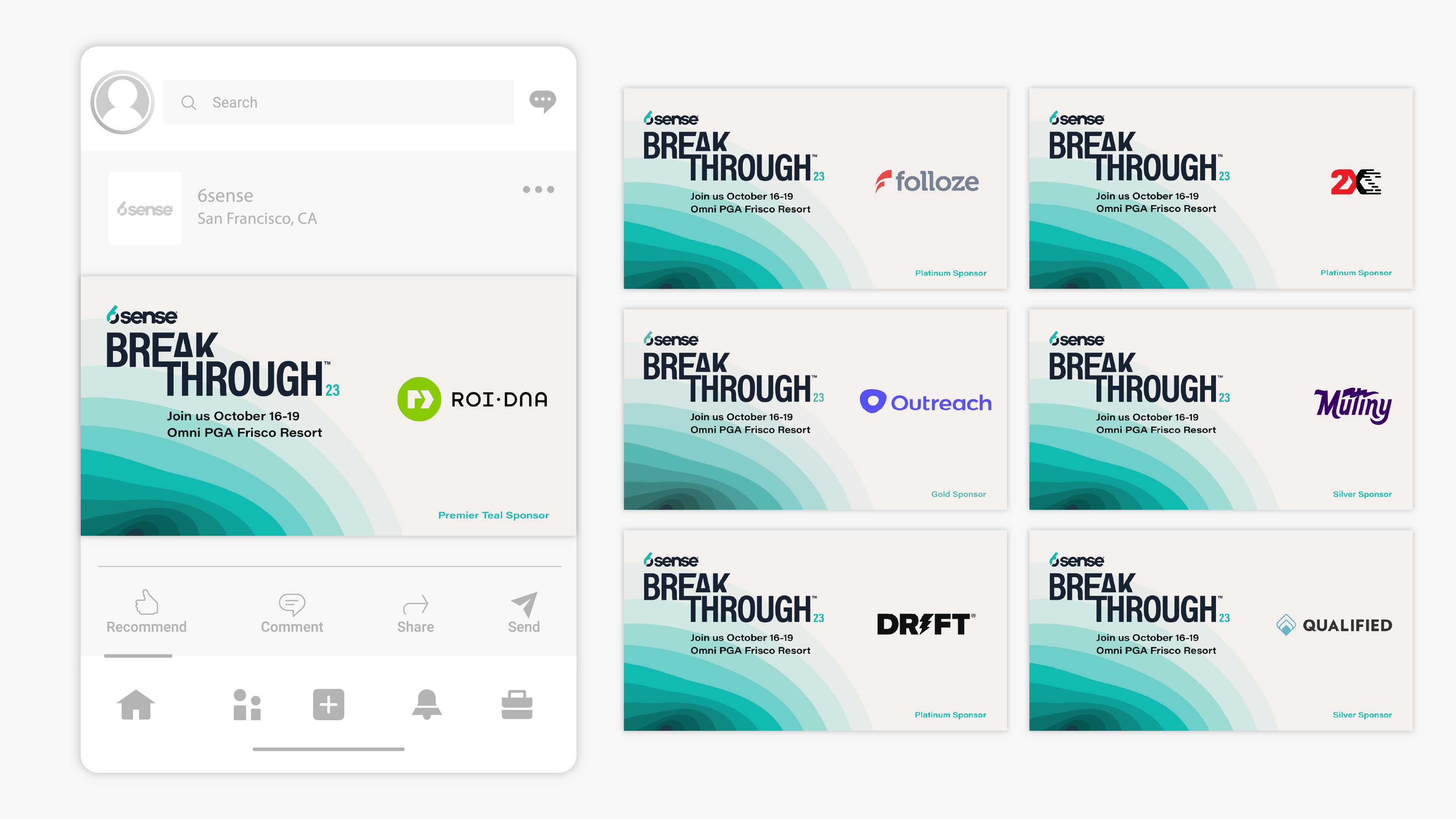 I supported the Creative Director and Art Director on Breakthrough 2023, 6sense’s flagship annual event with over 1,200 attendees. I contributed to developing the event branding and designed a wide range of promotional assets, including general event and sponsor promotions for more than 60 guest speaker sessions. I created the Executive Experience logo and the “BE MORE” graphic, designed the speaker presentation template used across 50+ sessions, and developed digital venue signage, iPosters, meter boards, and agenda monitors. I also collaborated with the Customer Marketing team to produce visuals for the Breakthrough Awards ceremony. In addition, I designed the event lanyard and a set of over 30 collectible pin buttons used by attendees to personalize their badges.