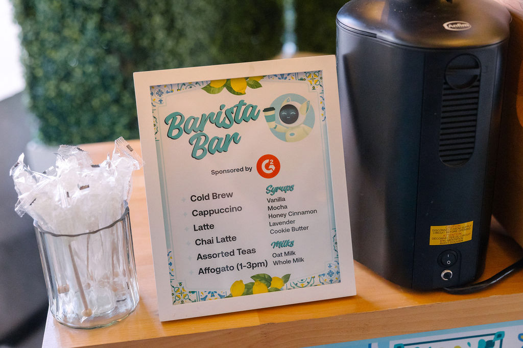 Coffee Cart (4.4 ft x 3 ft) and Spritz Bar Cart Signage (6 ft x 3.25 ft)