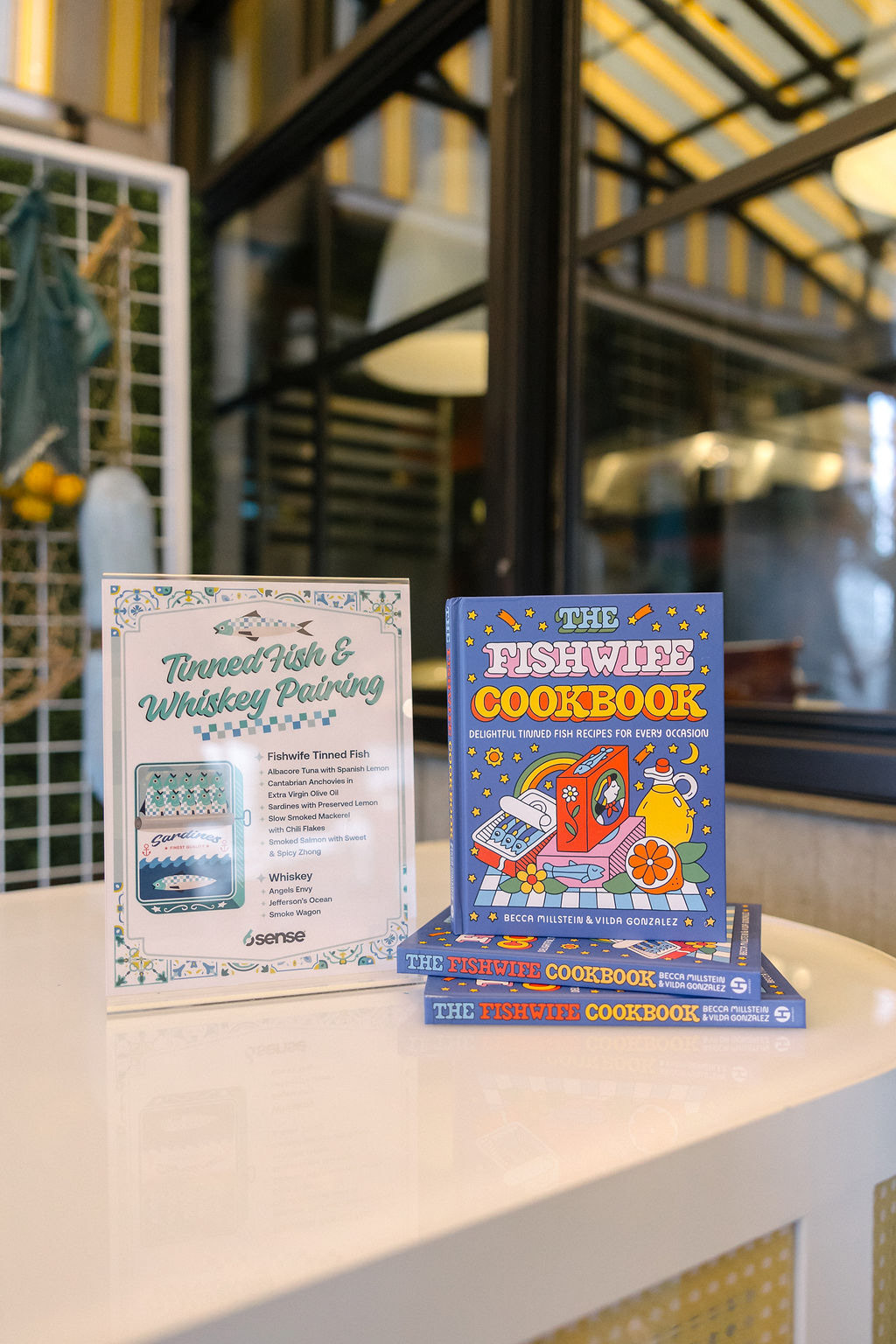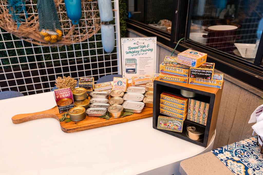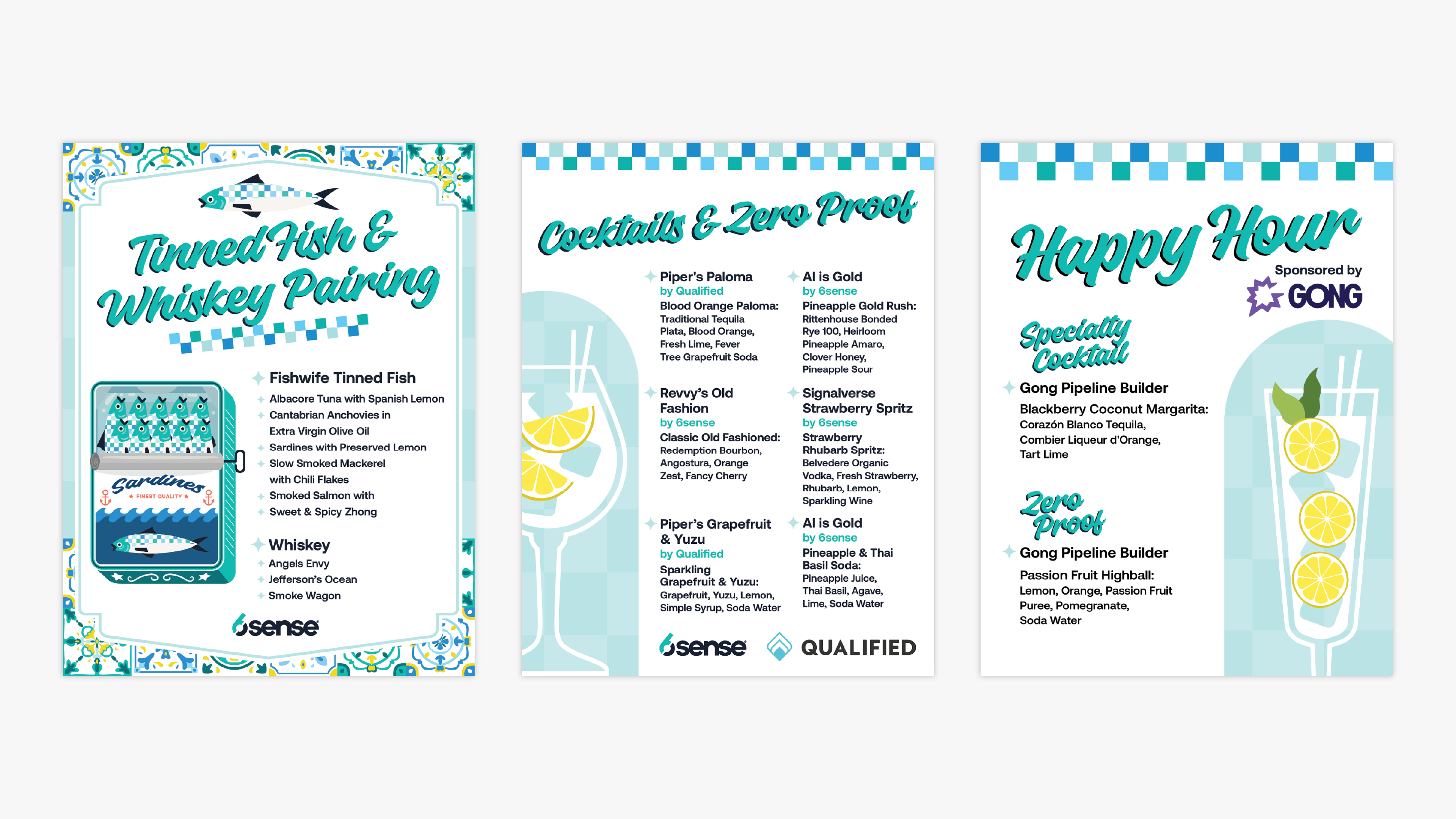Table Signage for Tinned Fish Activation and Cocktail/Happy Hour Menus