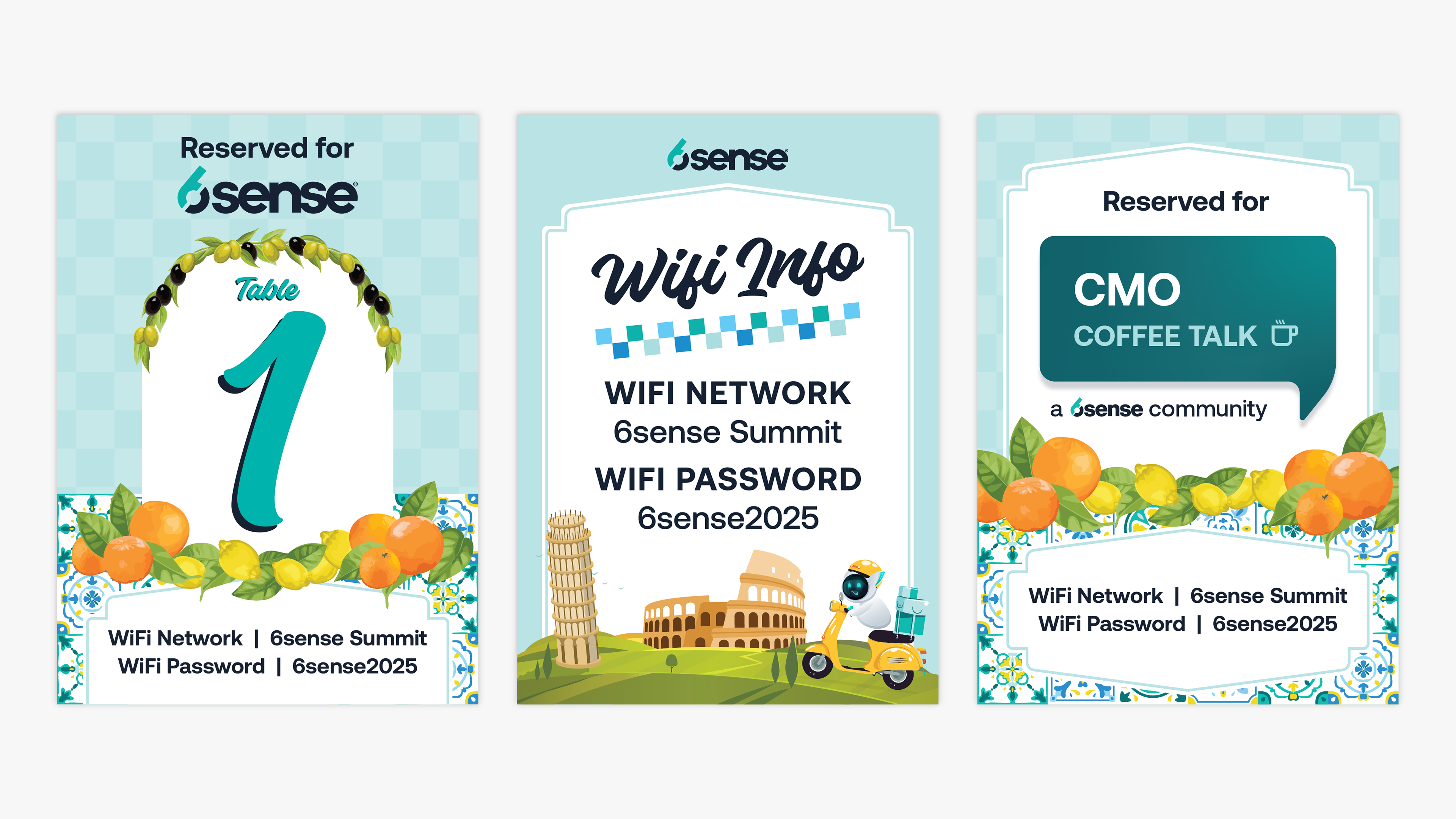 Table Signage for Reserved Table Numbers, WIFI Info, Reserved for CMO Coffee Talk