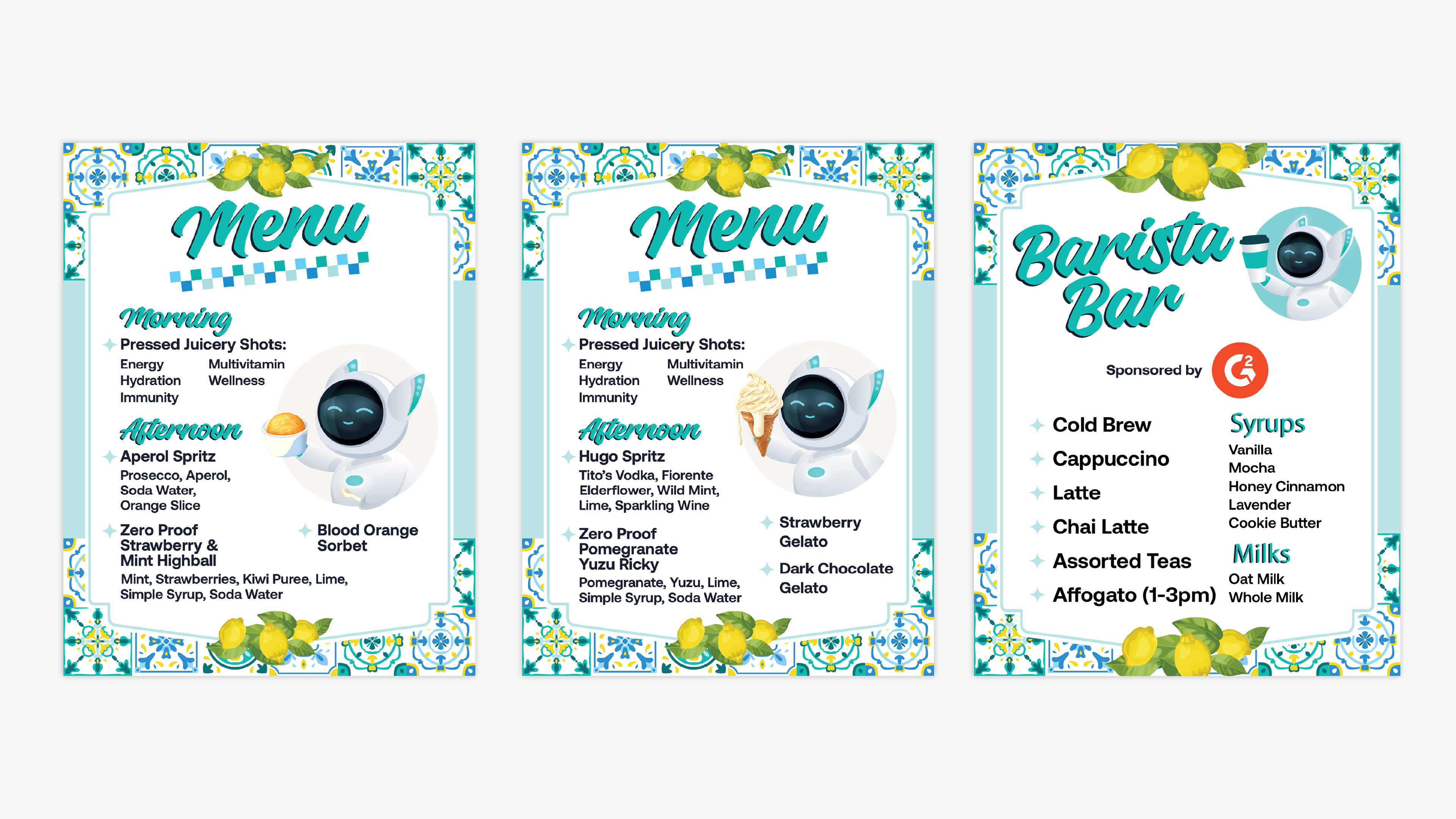 Table Signage Morning and Afternoon Beverage Menu, Coffee Cart Menu